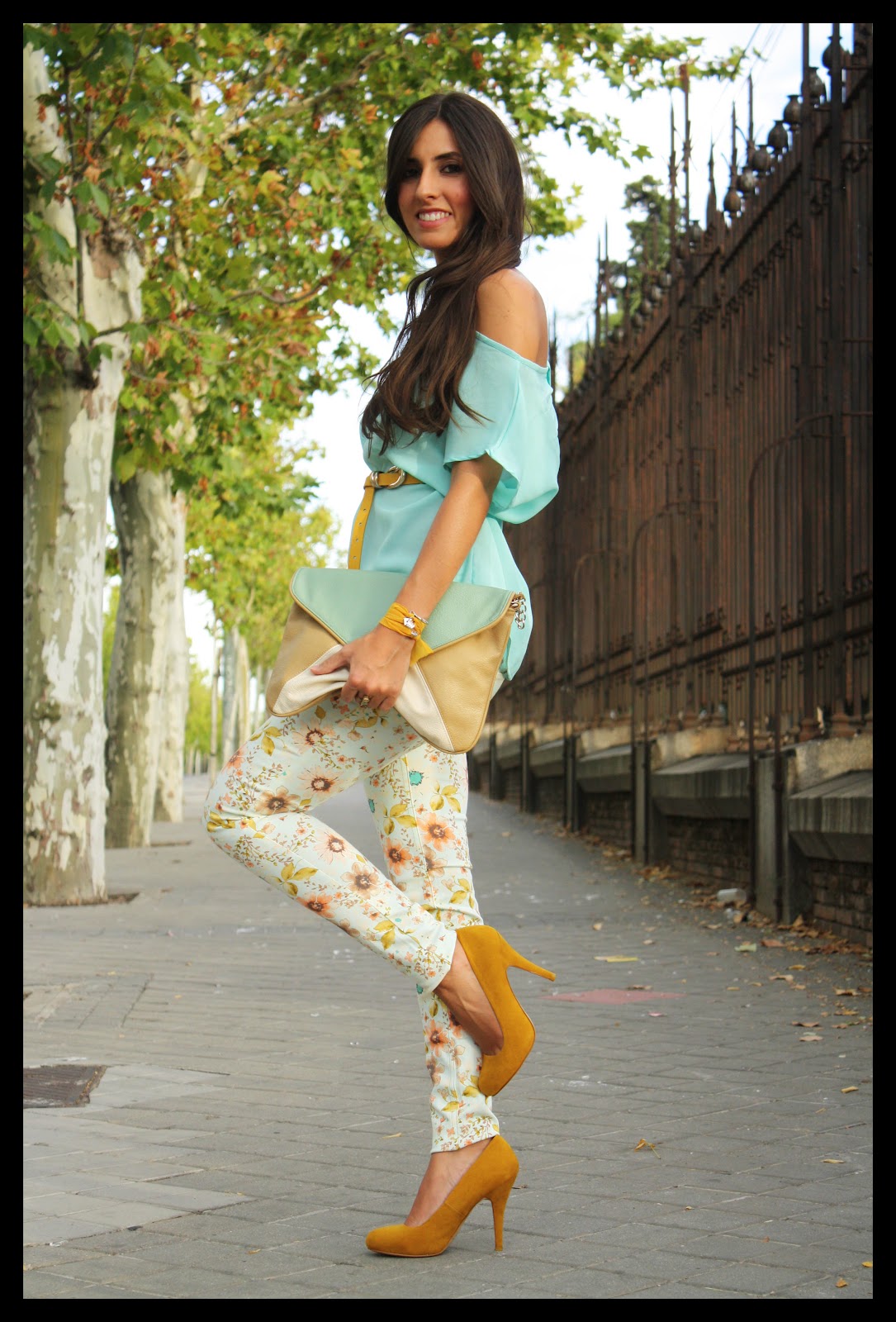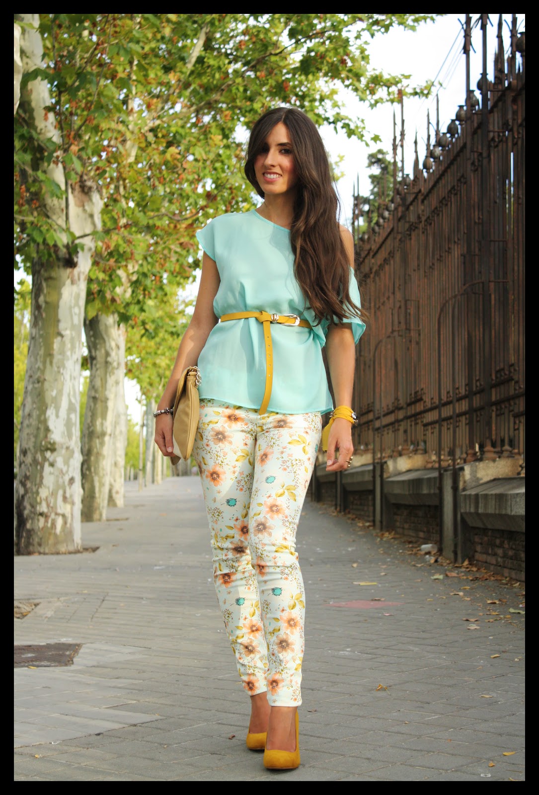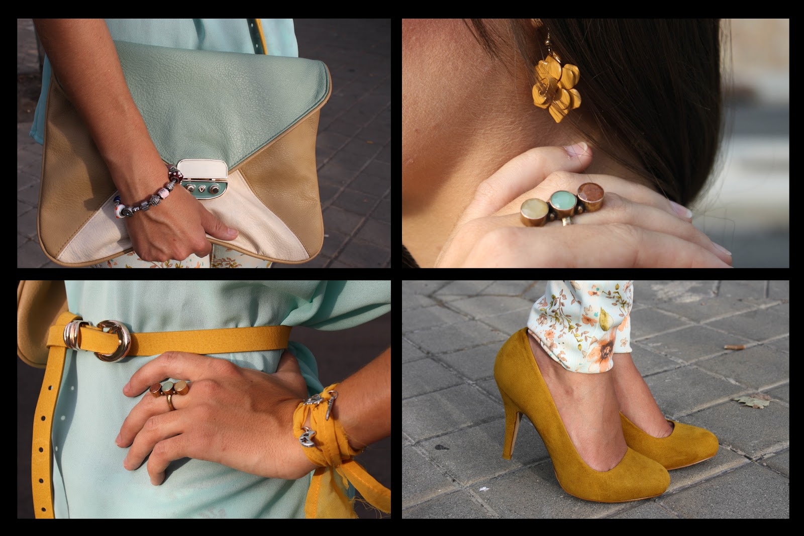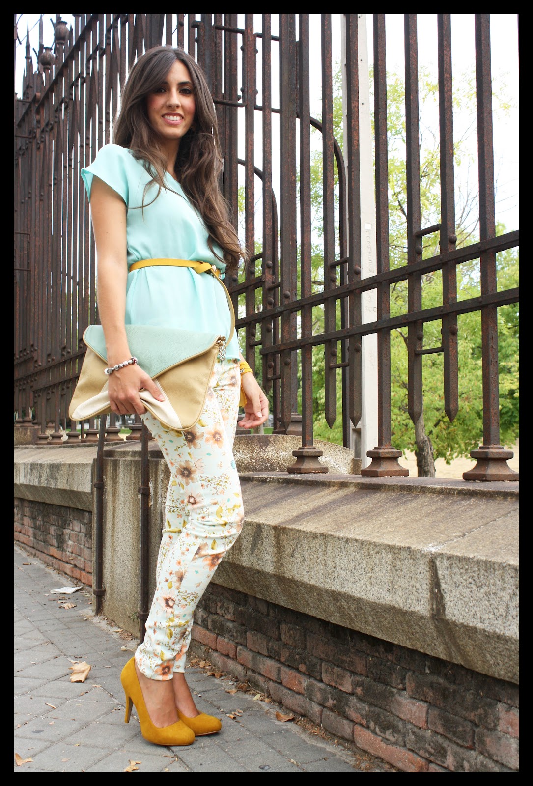 Estrenamos semana… ¡y estación!, aunque el look que os enseño hoy parece más primaveral que otoñal. Flores y tonos pasteles con un toque de mostaza para romper con los colores suaves del look.