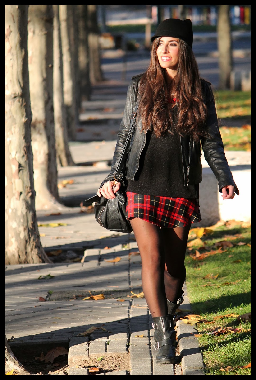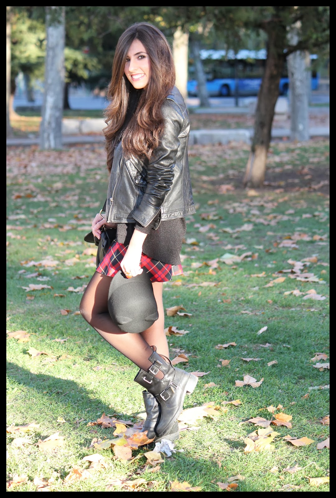 Seguro que a estas alturas ya estáis un poco hartas del estampado tartan, pero a mi me sigue encantando. Tengo varias prendas con este print, pero esta faldita de neopreno de Zara es mi preferida. En esta ocasión la he combinado con mis zapatos estrella de la temporada: estas botas moteras, también de Zara. Son comodísimas y me encanta el toque rockero que aporta a los looks.